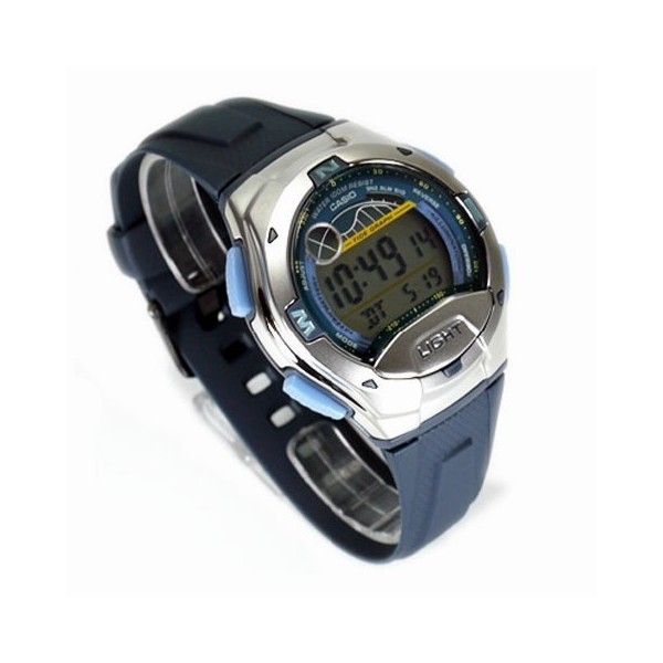 Cette montre vous indique l’heure de façon analogique sur deux fuseaux horaires, ainsi que la date, le jour, et le mois. Elle possède un chronographe et un compte à rebours avec répétition automatique. Ce qui est intéressant est la présence d’un graphique des marées, avec un âge et graphe de la lune, ainsi qu’un mode orientation en fonction du soleil. Enfin, elle est étanche et résiste à une pression de 10 bars, soit environ 100 mètres de profondeur. Elle pourra donc vous accompagner en baignades et pour des plongées peu profondes comme le snorkeling.